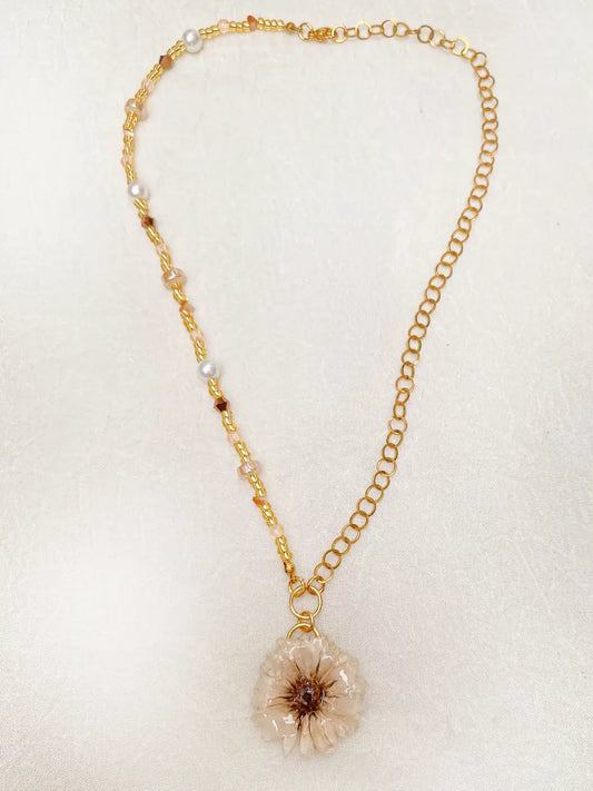 Luz de Campo Beige – Collar flor natural sellada en resina