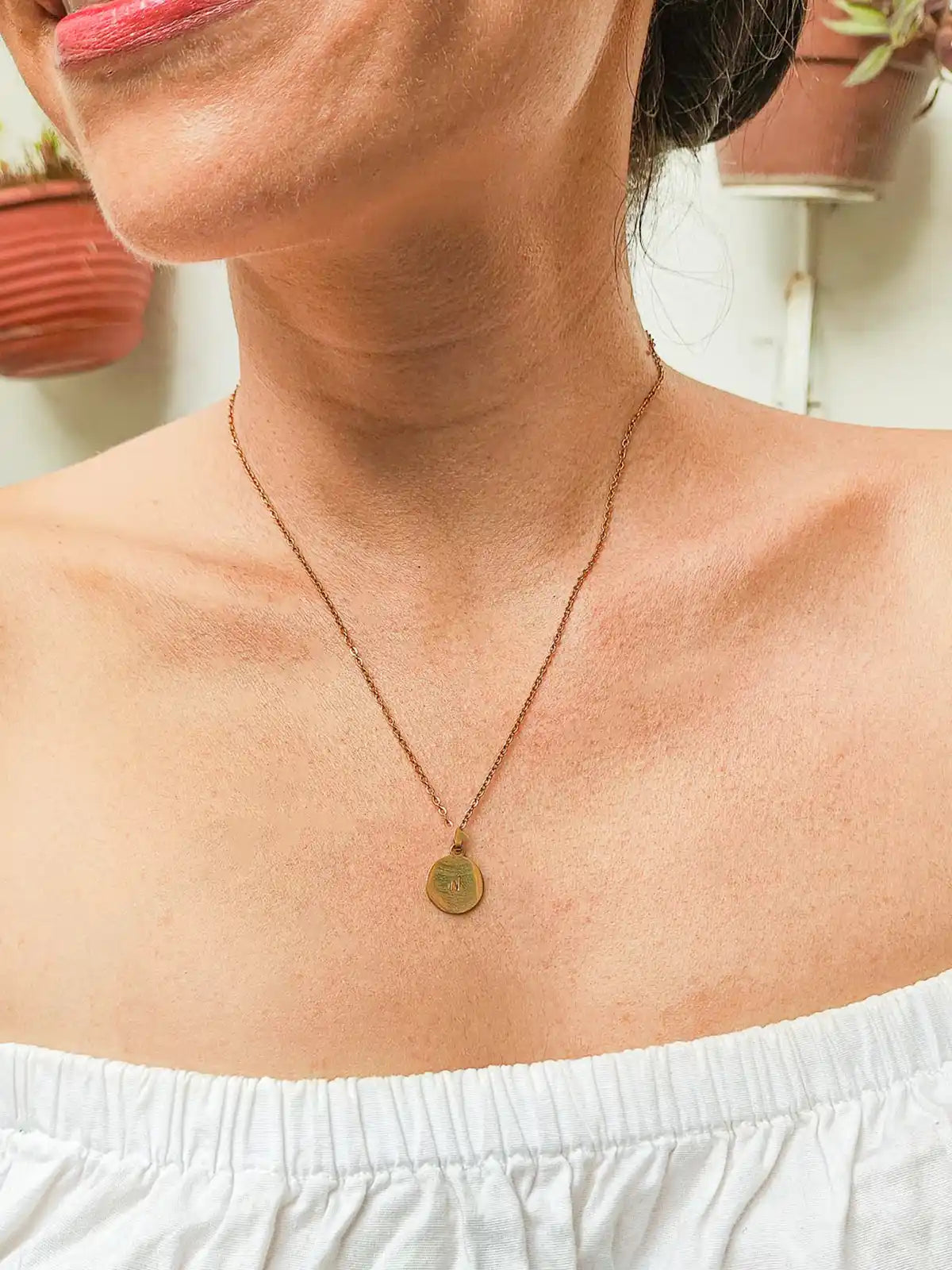 La cadena Huella Dorada es más que un accesorio, es un reflejo de quién eres y de aquellos que llevas en el corazón. Su dije con inicial grabada a mano con sellos en una placa de acero inoxidable encapsula momentos, recuerdos y emociones, convirtiéndose en un accesorio lleno de significado.