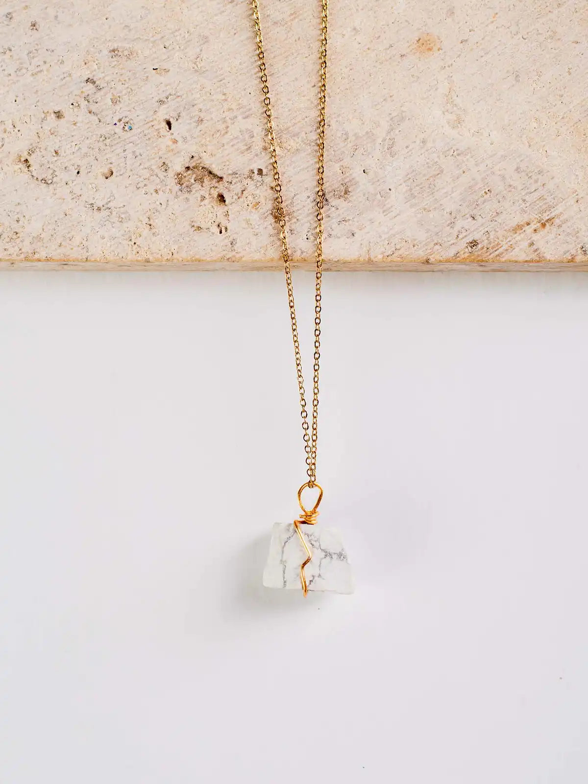 La cadena de Howlita es el accesorio perfecto para quienes aman el equilibrio entre lo moderno y lo clásico. Su piedra blanca con sutiles vetas grises combina con todo y añade un toque sofisticado a tu estilo. Es ideal para esos días en los que quieres lucir elegante sin esfuerzo. La cadena de acero inoxidable asegura su durabilidad, convirtiéndola en una pieza que te acompañará en cada momento especial.