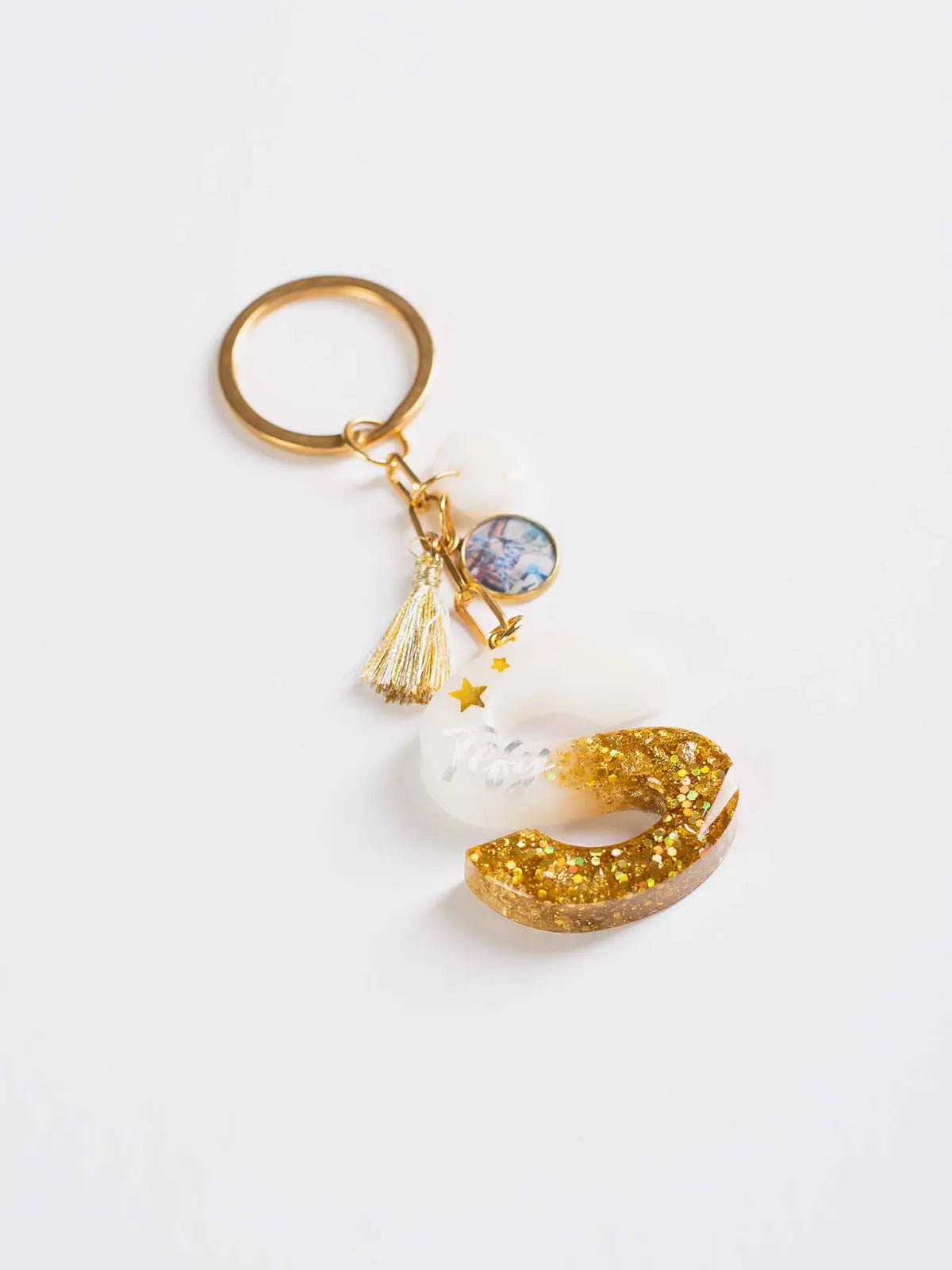 Llavero hecho a mano en resina con la forma de letra que desee. Los herrajes son en acero inoxidable. La letra está adornada con una borla, un circulo de resina y un circulo con una foto. Puedes escoger el color y el nombre o palabra que se le coloque, pon a volar tu imaginación. El llavero se empaca muy bien en la cajita que se observa en una de las fotos. El tiempo de fabricación es de 3 a 5 días hábiles después de confirmar el pedido.